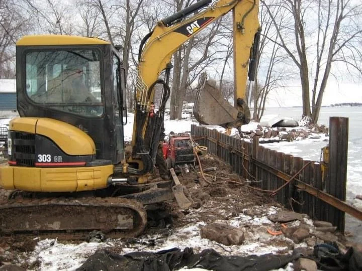 Pilings are the foundation of your project. In order to provide the proper structural integrity and longevity to the project, pilings must be effectively driven to refusal. This is especially true for permanent docks, landings and decks. Docks by Dom, LLC, has both pneumatic and hydraulic driving equipment to ensure the best method is used for the water and soil conditions at your site. Our capabilities include driving various size pipe both in the water and on shore using either type equipment. Sheet steel pile driving is best accomplished with the use of a vibratory hydraulic driver.